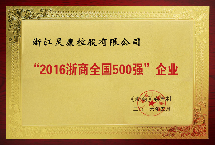 浙江博天堂控股有限公司再度荣膺“2016浙商全国500强”